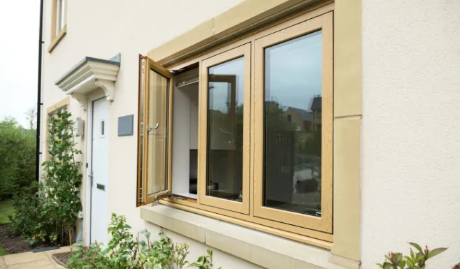 A chamfered sash has neat, angled (bevelled) edges rather than curves, offering a crisp, traditional profile that blends classic charm with a sharper, modern edge. These sashes open outward and stand slightly proud of the frame.